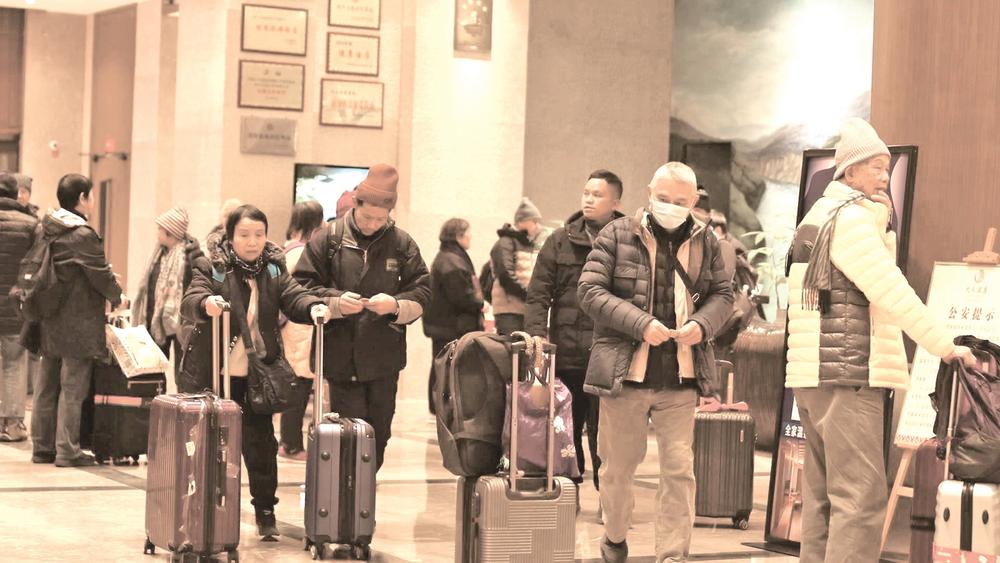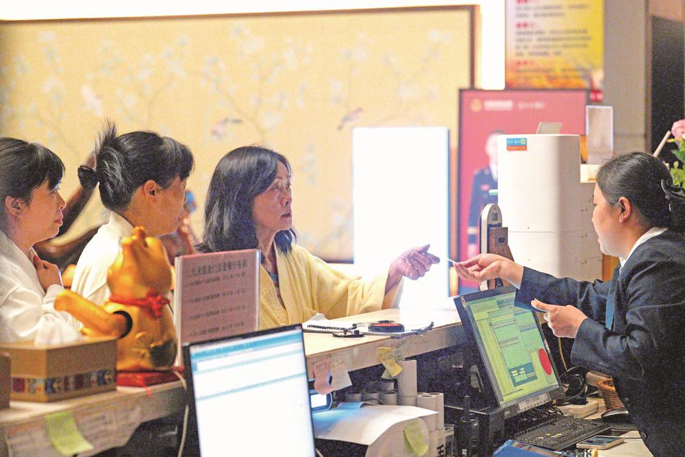 思南九天温泉酒店游客正在前台登记准备泡温泉。 市融媒体中心记者 申逸恺 摄