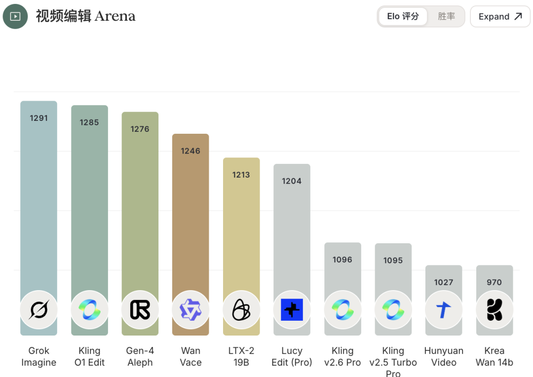 图像转视频:Elo 1298,击败谷歌的Veo 3.1、中国的Kling和OpenAI的Sora。这里是把静态图片「动」起来,比如一张风景照变成风吹树摇的动态场景。